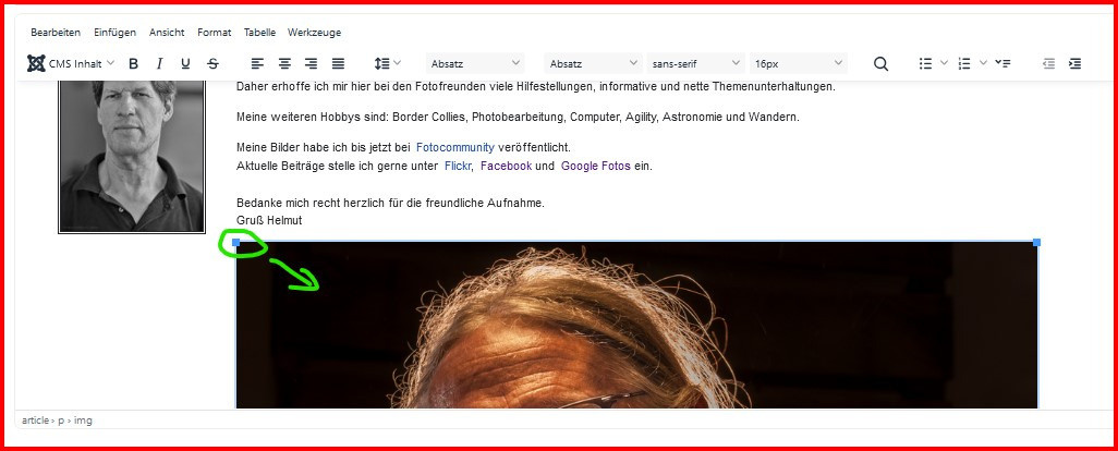 Jetzt auf den Bilderrahmen klicken und das Bild mit den Ecken zusammenziehen, auf die gewünschte Größe.