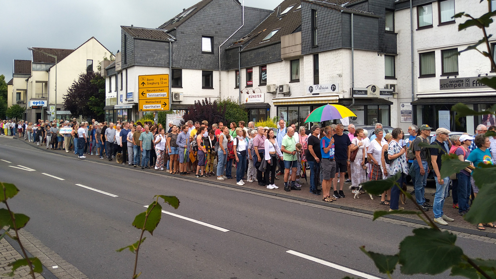 Alexander Supp | February 9, 2026Google-KI sagt am 9.2.2026: Das Bild zeigt eine Menschenkette gegen Gewalt, die sich am 1. August 2024 in Seelscheid (Gemeinde Neunkirchen-Seelscheid) formierte. Hier sind die Details zu dem Ereignis: Anlass: Die Versammlung wurde vom Bündnis „Neunkirchen-Seelscheid ist bunt – Gemeinsam für Vielfalt und Demokratie“ als Reaktion auf Gewaltvorfälle in der Gemeinde organisiert. Ein konkreter Hintergrund war ein öffentlich ausgetragener bewaffneter Streit auf der Zeithstraße sowie mutmaßliche Brandanschläge. Teilnehmer: Trotz Regens kamen rund 400 Menschen zusammen. Verlauf: Die Teilnehmer bildeten eine etwa 300 Meter lange Kette entlang der Zeithstraße, die von der Bushaltestelle „Seelscheid Post“ bis zum „Haus im Park“ reichte. Botschaft: Die Aktion diente als solidarisches Zeichen für die Opfer und als Kundgebung gegen Gewalt und für ein friedliches Miteinander. Möchten Sie mehr über die Hintergründe der Vorfälle oder die Arbeit des lokalen Bündnisses für Vielfalt erfahren?img 20240801 img 20240801img 20240801